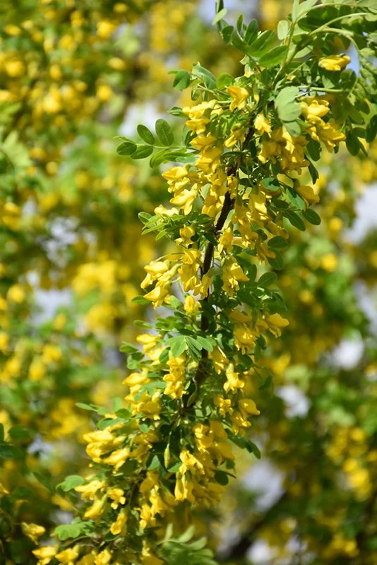 Caragana is a cold-hardy shrub first brought to North America by Russian and North West Asian immigrants as a back-up food crop due to the edibility and hardiness of its seeds and flowers. The plant has also historically provided farmers with windbreaks across farmland. It is sometimes referred to as Siberian peashrub.