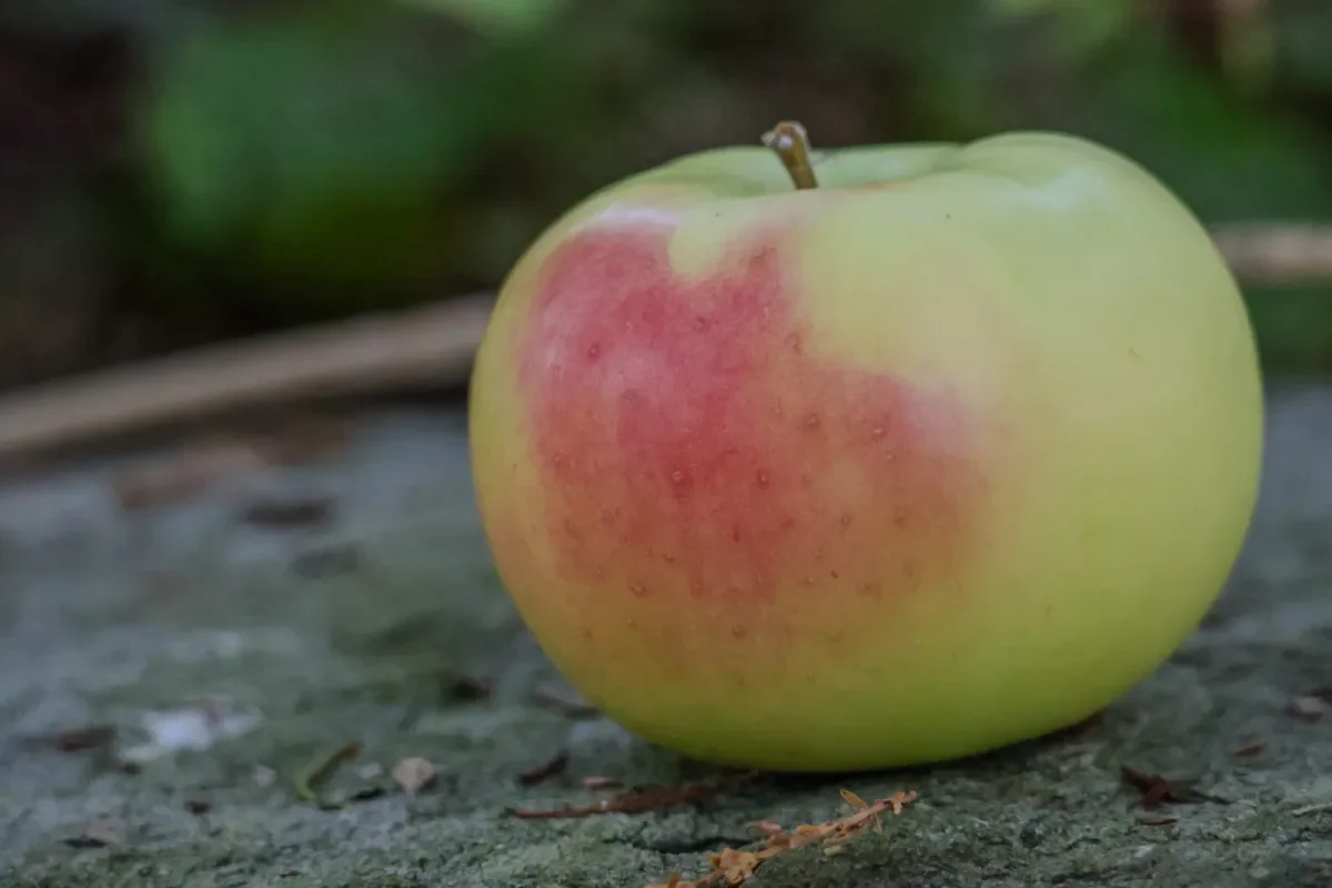 The Maiden’s Blush Apple tree originated in New Jersey in the late 1700s. Its fruit consists of yellow skin with a reddish blush. While crisp and tart upon picking, the apple’s flavor mellows and sweetens with time. It’s said to be a great choice for making dried fruit due to its low juice content.