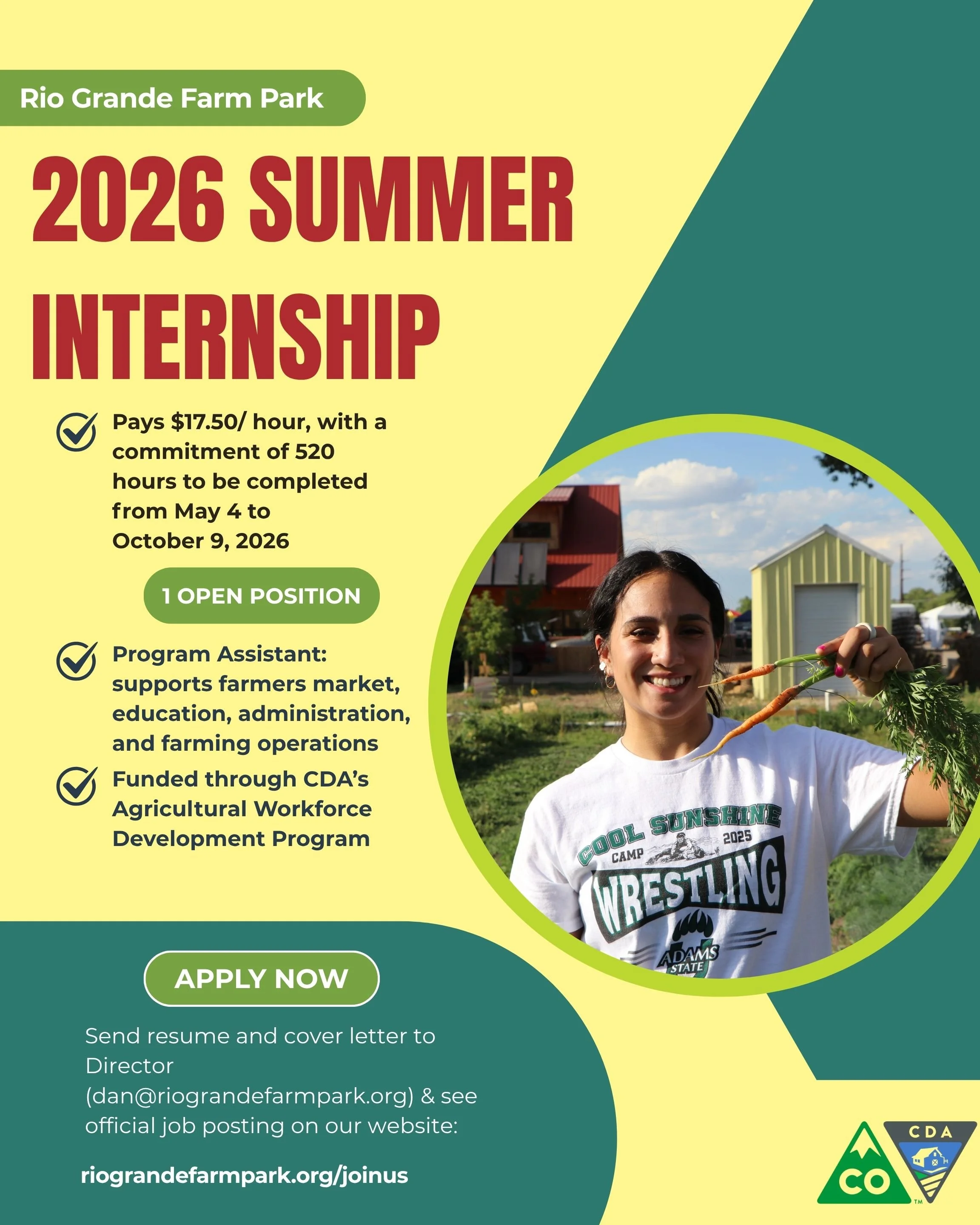 CDA Internship Applications are Open at the Rio Grande Farm Park Mar 30 Written By SLV Local Foods Coalition SLV Local Foods Coalition
